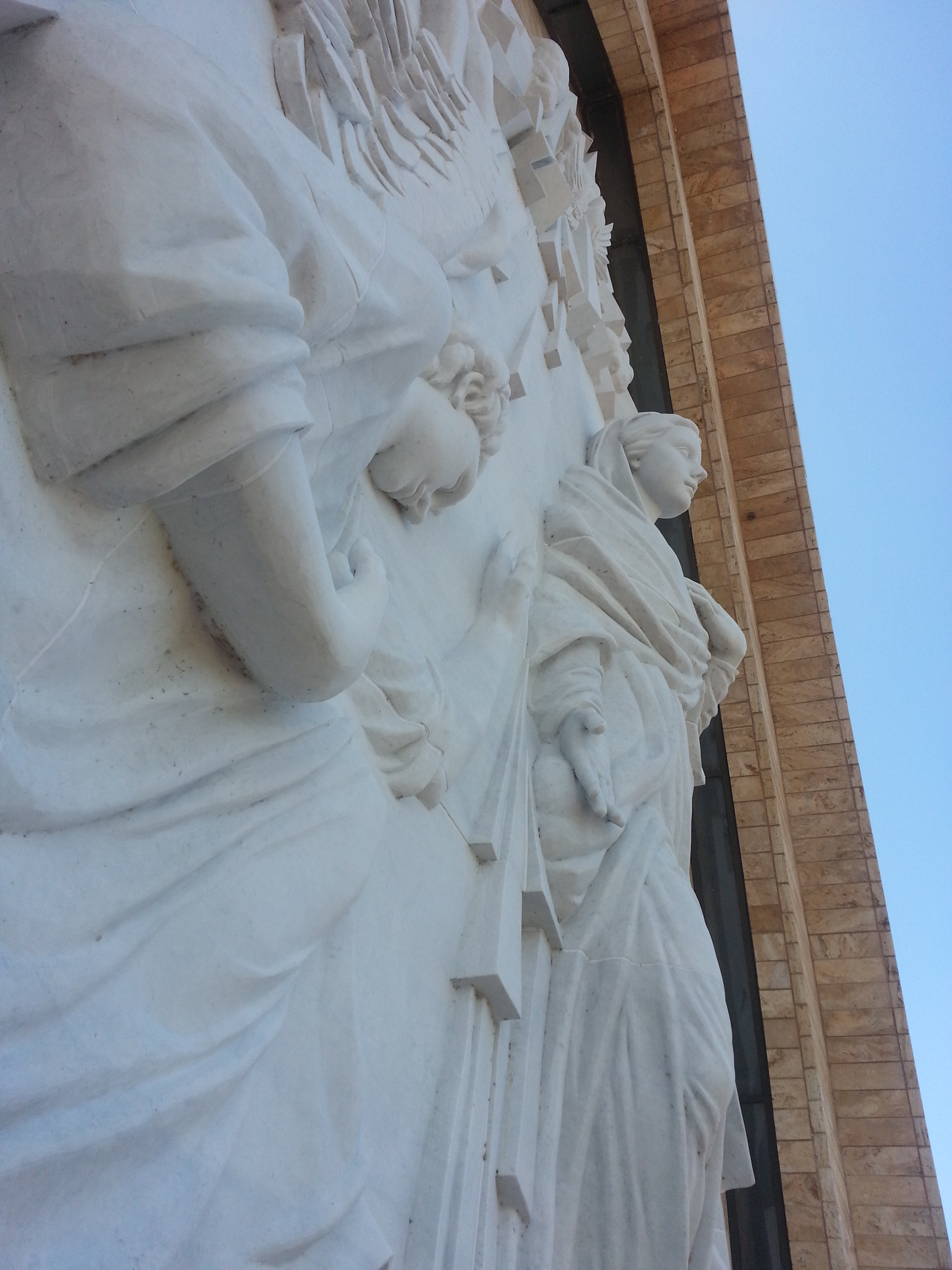 Schmalz sculpted the large bronze Crucifix in the Oratory and a series of about ten bronze religious sculptures that are dispersed throughout the AMU campus.