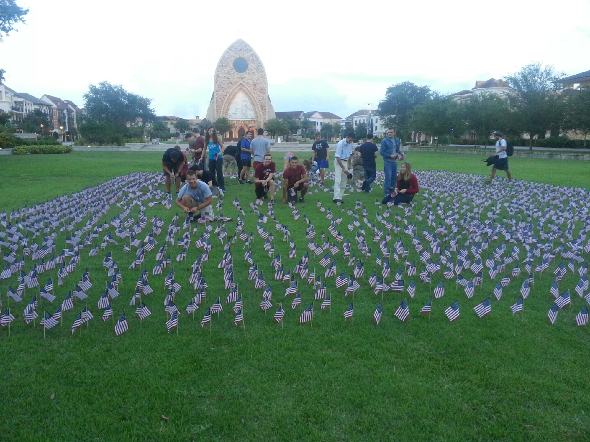 9/11/2014: Ave Maria University students and veterans in the community planting 3000 flags to honor those murdered by terrorists on 9/11/2001