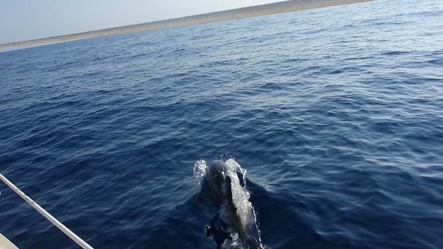 gear for 11 people was no simple task, though it got done and the group embarked early Friday morning. Under perfect skies and great sailing conditions, they motored out of the harbor and soon hoisted the mainsail for the 24-hour journey to the Tortugas. None of the crew will forget the trio of dolphins who tirelessly and joyfully swam steadily in formation at the bow of the boat for half an hour, almost as guardian angels.