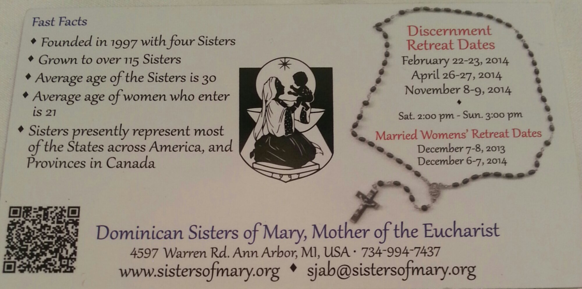 Road trip to the Mother House in Ann Arbor. Our daughter met the Dominican Sisters of Mary Mother of the Eucharist back there when she was one of their students from 2000 to 2003. She was reacquainted with the Sisters in 2007 at their mission convent in Ave Maria where five Sisters live in our neighborhood (3 of them teach at the amazing Catholic K-12 school in town). In 2012 she became a postulant and she is now a Novice.
