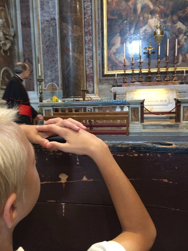 One lucky Ave Maria boy bearing the name is having the trip of a lifetime with his mother – they traveled to Rome to attend tomorrow’s canonization ceremony! John Paul Allan’s friends and neighbors have been able to follow his special pilgrimage via Facebook. Mrs. Allan owns a Catholic gift and book store and home school supply store called By Way of the Family that she named after a phrase from Saint Pope John Paul”s apostolic exhortation Familiaris Consortio: “The future of humanity passes by way of the family.”