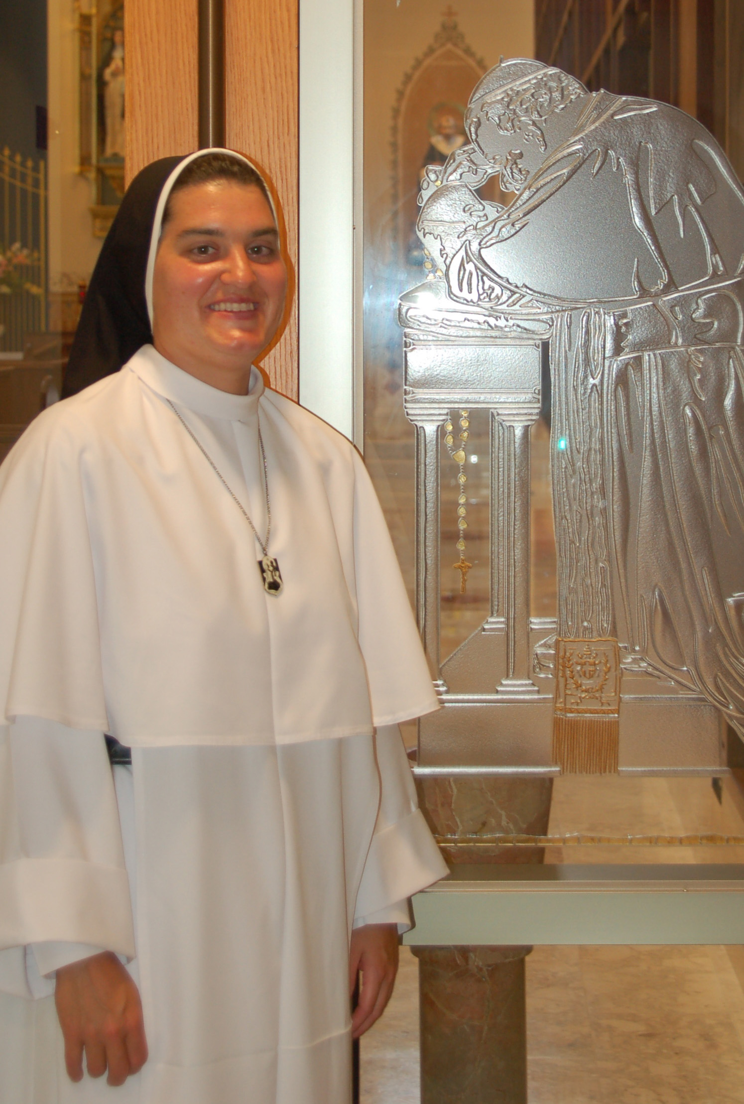 “I received the name John Paul as my religious name the day I received the holy habit of St. Dominic, August 5, 2001. ‘John Paul II, we love you!'” – window at the Mother House of the Dominican Sisters of Mary Mother of the Eucharist